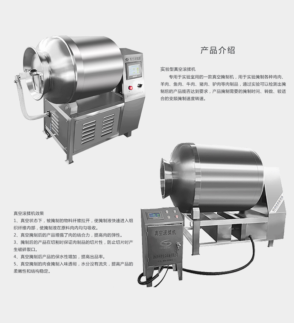 產(chǎn)品規(guī)格:60L/200L/600L/1000L/1600L/2000L/2800L/3600L/6000L真空滾揉機(jī):是肉制品加工腌制必選設(shè)備,真空狀態(tài)下,讓肉在滾筒內(nèi)上下翻動,相互撞擊、摔打、達(dá)到快速腌制目的。真空腌制后提高了肉的嫩度,增強(qiáng)肉的結(jié)合力和保水性,大大縮短了腌制時間,提高了產(chǎn)品的出品率。滾揉工作時的工作環(huán)境溫度為0~3℃為宜。