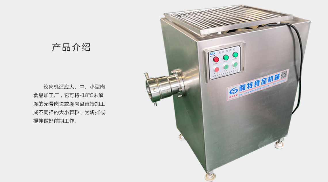 產(chǎn)品規(guī)格:100/120/250絞肉機(jī)原理:依靠螺桿將料斗箱中的原料肉推到預(yù)切板處,通過(guò)螺桿的旋轉(zhuǎn)擠壓使孔板與絞刀產(chǎn)生相對(duì)運(yùn)轉(zhuǎn),從而將物料肉切成顆粒狀,確保了肉餡的均勻性。它可將塊狀肉(凍肉)及食品絞至φ6-φ16mm的顆粒,是肉類制品加工的必用設(shè)備。