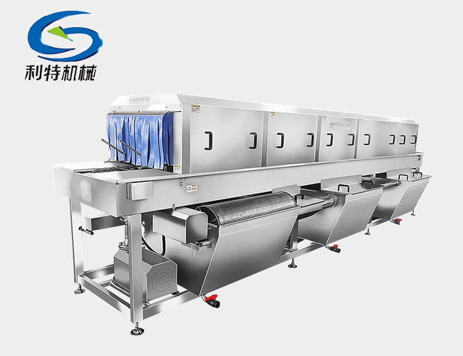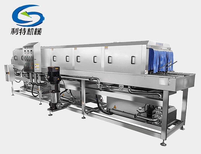 3、漂洗段:將筐子表面殘留的污漬漂洗掉,達到表面無殘留,同時對筐子消毒殺菌。